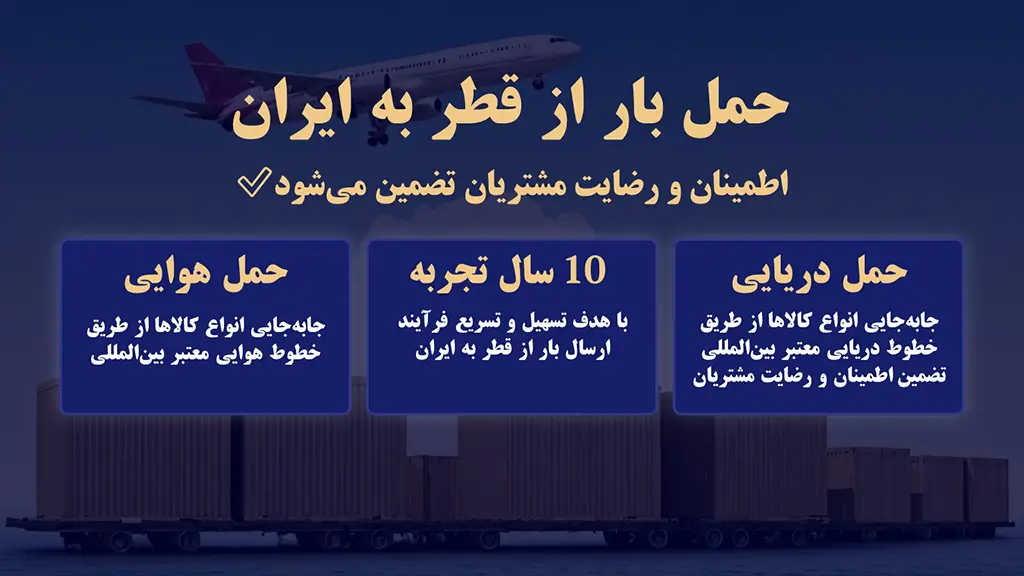 از اعتماد و توجه شما بسیار سپاسگزاریم. دغدغه شما درباره زمانبندی دقیق ارسال بار از قطر به ایران کاملاً قابل درک است، بهویژه در شرایطی که تحویل بهموقع کالا اهمیت زیادی دارد.